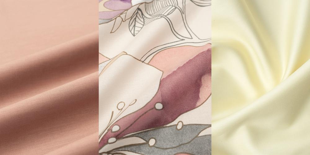 Начин на сплитане: Дали нишките се пресичат в класическа шахматна структура(като при Ранфорса) или в атлазена сплитка(като при Сатена), определя финалното усещане върху кожата Ви.